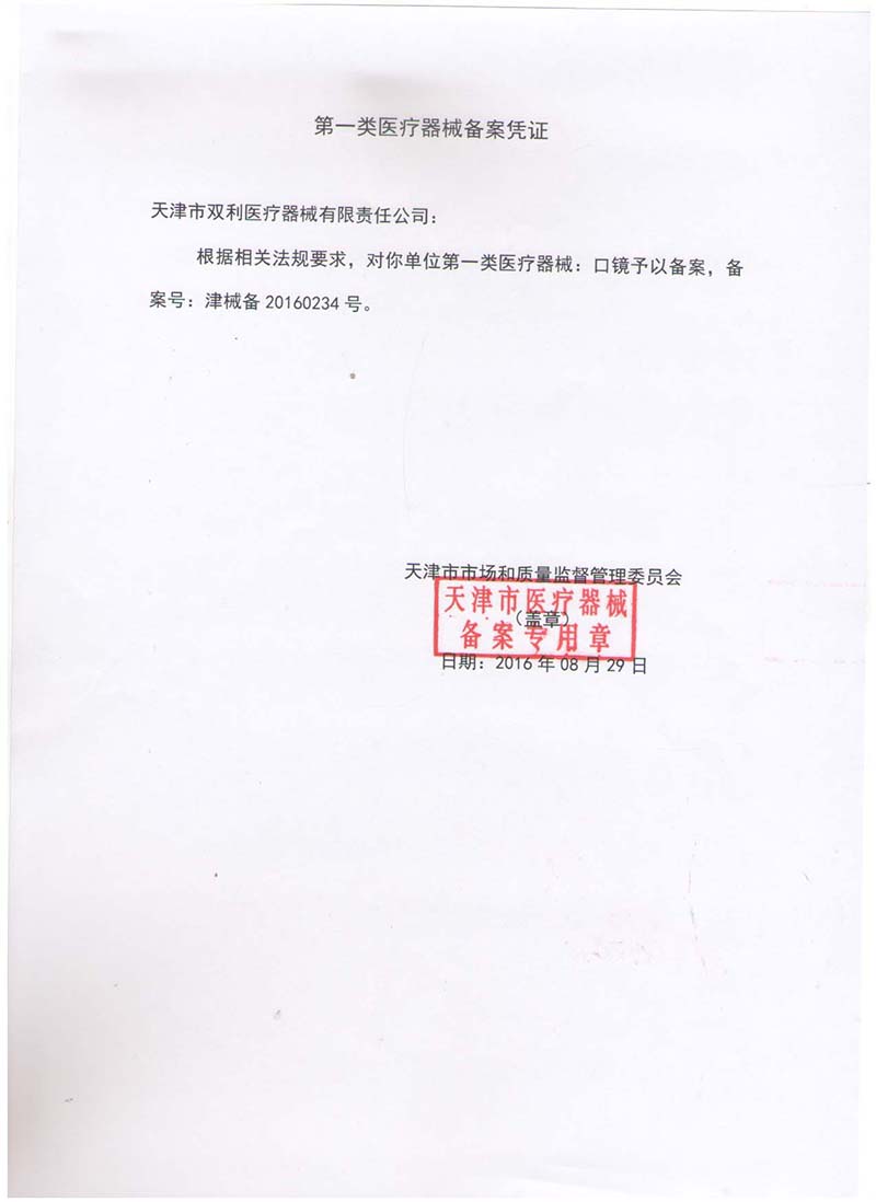 您所在的位置:主頁>>一類醫(yī)療器械備案憑證